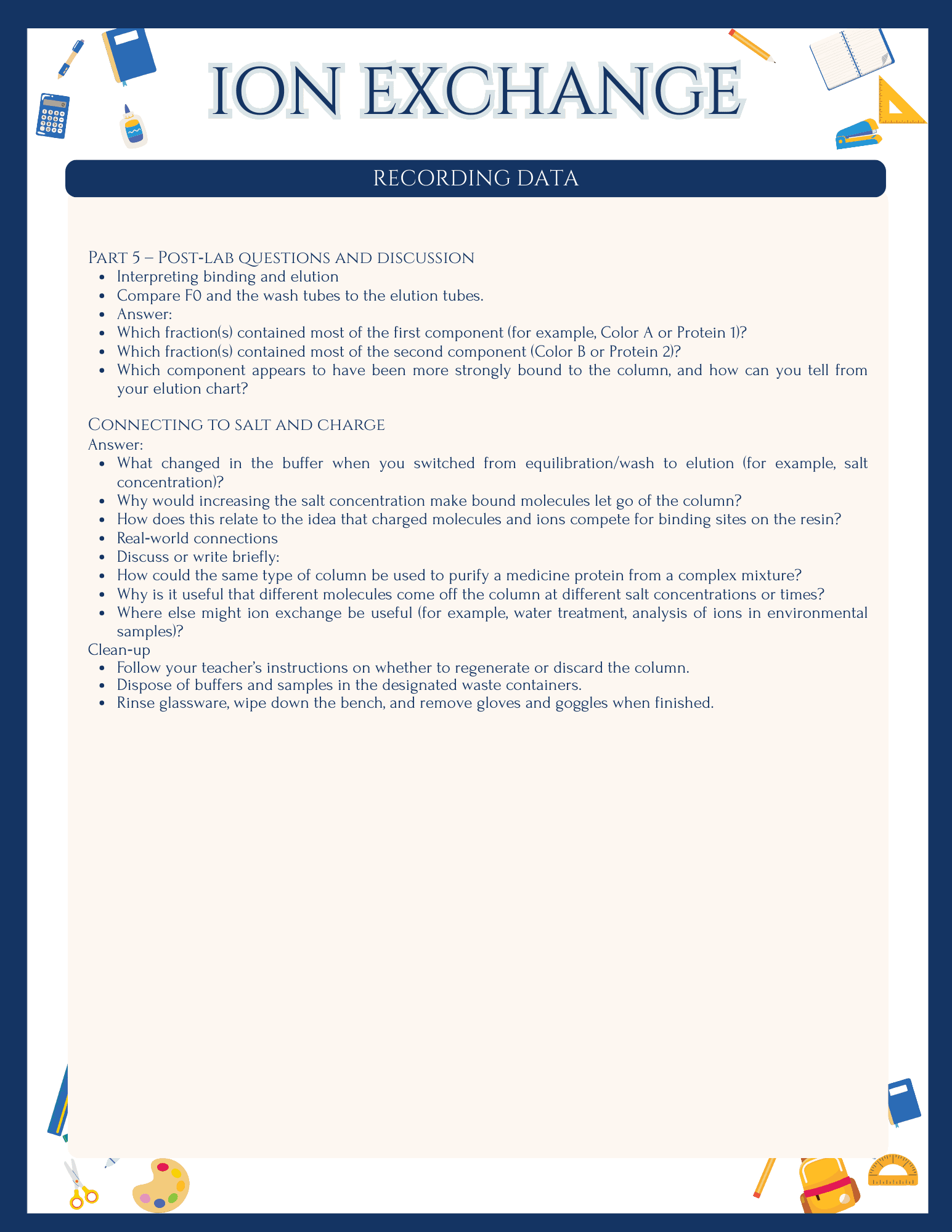Clear, step‑by‑step student procedure, from setup to clean‑up