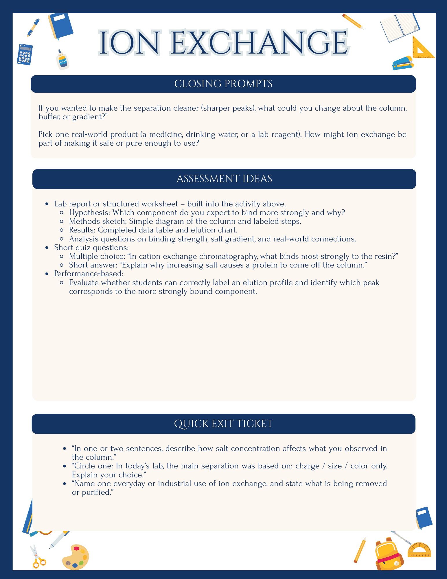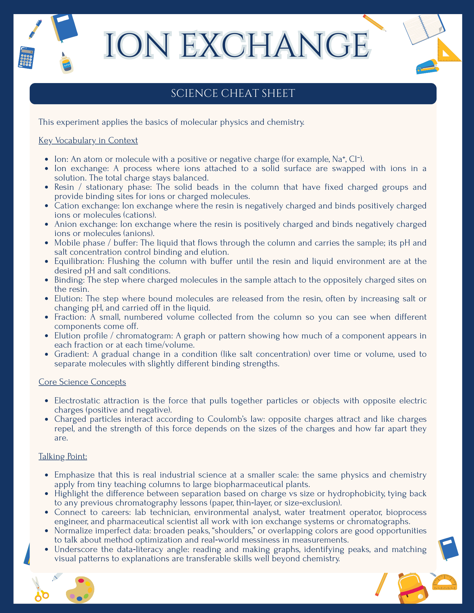If you want a lab that feels authentic, hits key chemistry and NGSS goals, and still remains accessible for non‑specialist educators, this Ion Exchange Chromatography Lab is designed for you.