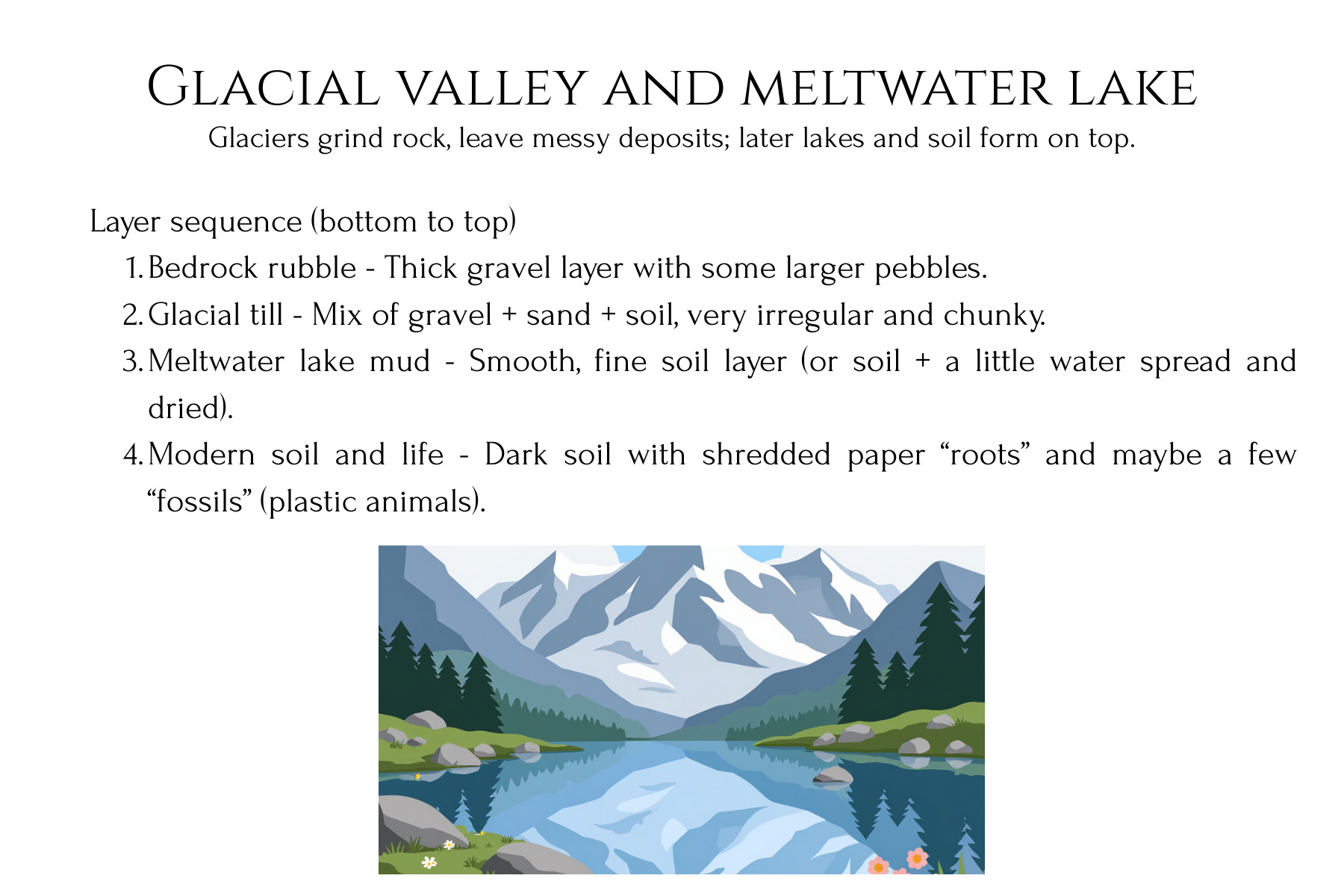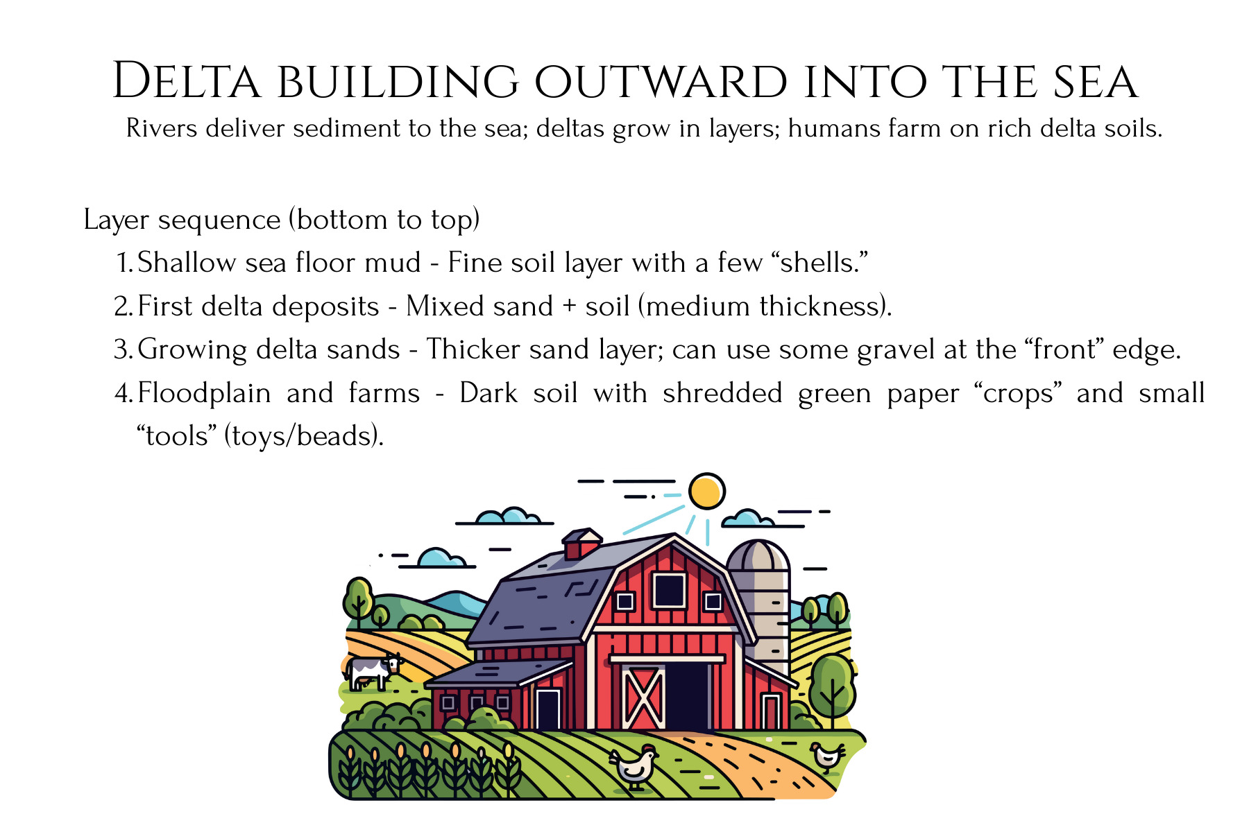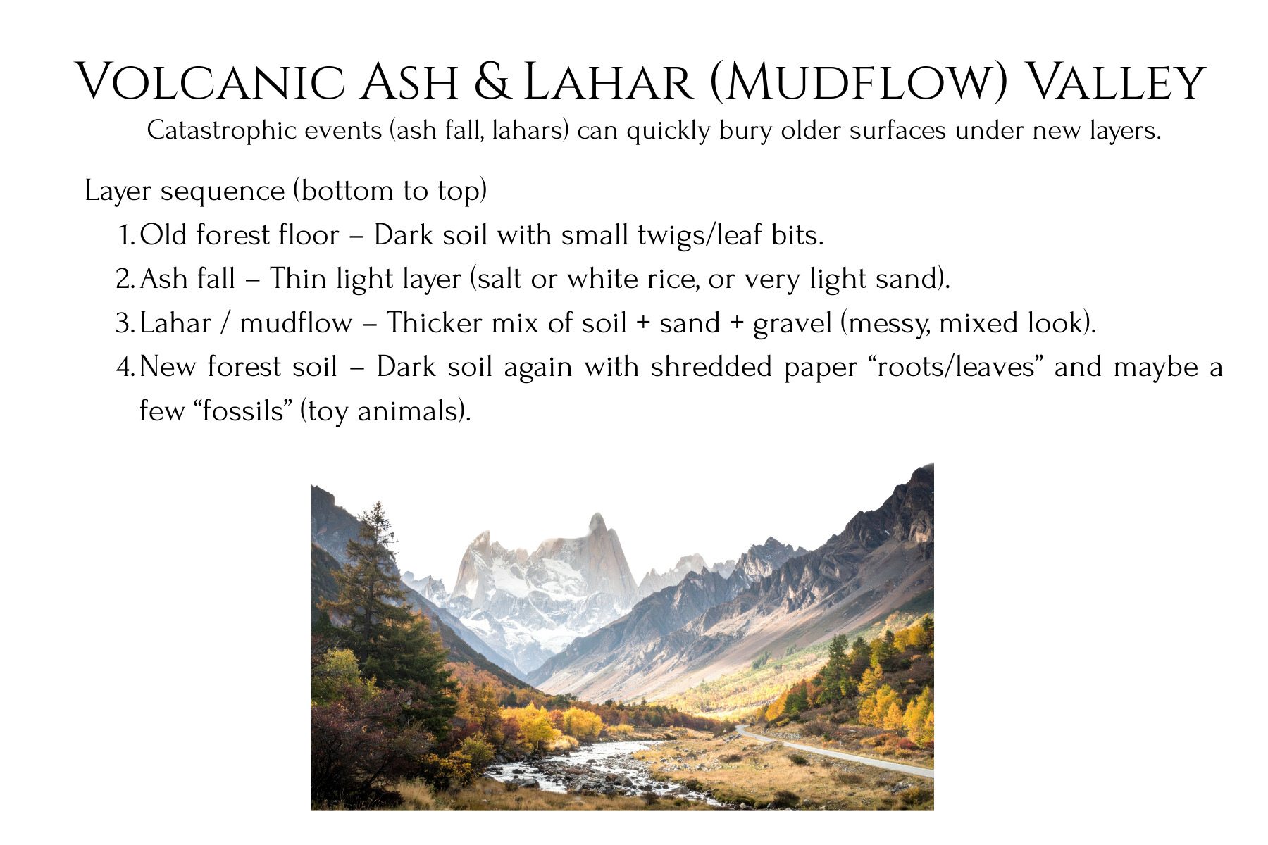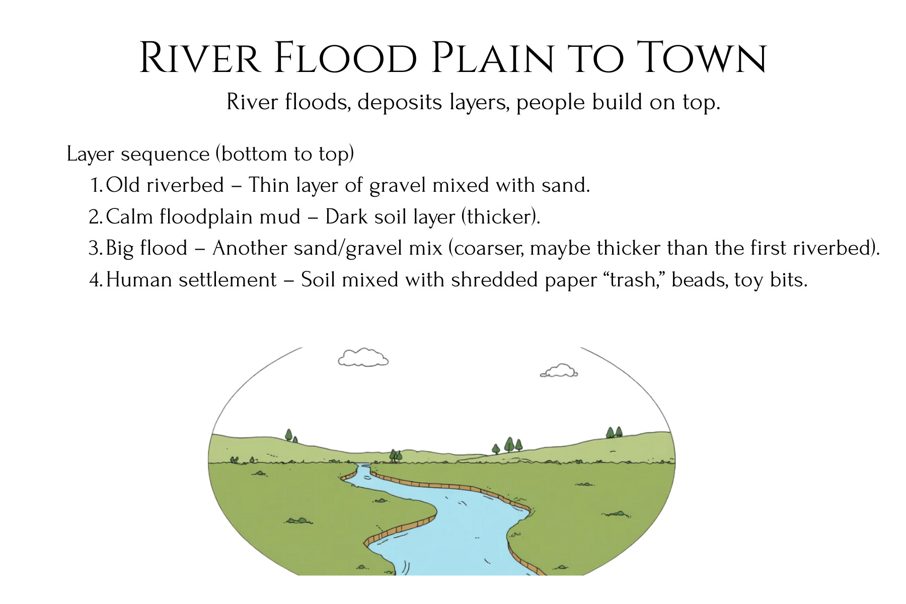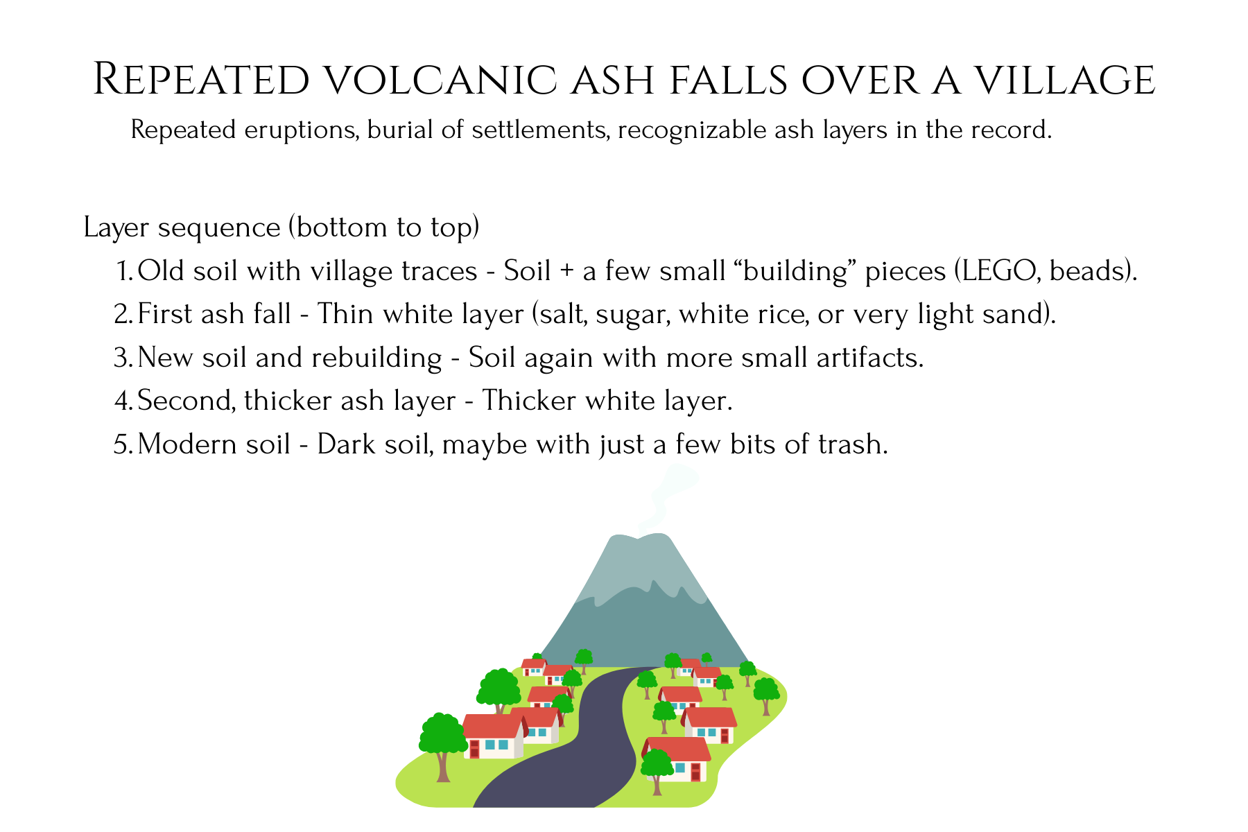 This stratigraphy lab unit turns abstract ideas about rock layers into a concrete, dig‑in experience for students. Learners first design and build a clear-bin “Earth history” model with layered sediments and artifacts, then trade and excavate to reconstruct the hidden story from the layers they uncover. Printable Landscape Story Cards, students can model real‑world environments like river floodplains, coastlines, glaciers, wetlands, deltas, deserts, and cities, then ‘read’ the layered record they create. In the second phase, they construct a playdough shield volcano, record successive lava flows on graph paper, and then cut a canyon and take core samples to reveal how eruptions and erosion reshape landforms over time.